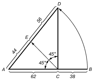 Отрезки золотой пропорции выражаются бесконечной иррациональной дробью AE = 0,618 ., если АВ принять за единицу, ВЕ = 0,382 . Для практических целей часто используют приближенные значения 0,62 и 0,38. Если отрезок АВ принять за 100 частей, то большая часть отрезка равна 62, а меньшая - 38 частям.