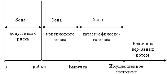 При выработке стратегии поведения предпринимателя в условиях риска целесообразно различать и выделять определенные области, зоны риска в зависимости от величины ожидаемых потерь (рис.2).