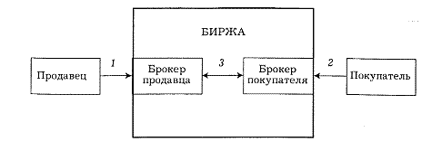 1 — поручение продавца брокеру; 2 — поручение покупателя брокеру; 3 — совершение сделки в соответствии с поручениями продавца и покупателя