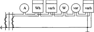 Трансформаторы тока (ТТ) включены в сеть по схеме неполной звезды на разность токов двух фаз. Чтобы трансформатор тока не вышел за пределы заданного класса точности, необходимо, чтобы мощность нагрузки вторичной цепи не превышала номинальной: z2н.>z2 . Перечень приборов во вторичной цепи ТТ приведён в таблице 17, схема их соединения — на рисунке 12.