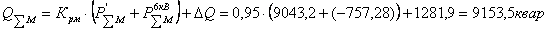 Суммарная реактивная нагрузка напряжением выше 1000В: