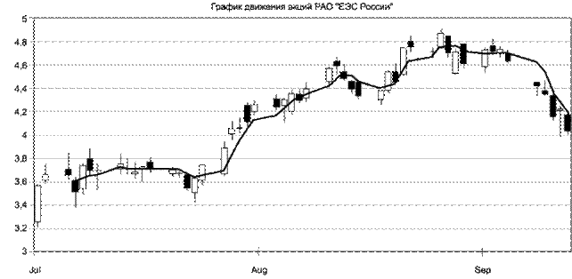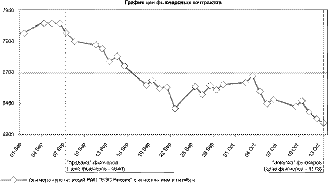 "продажа" 20 фьючерсных контрактов на курс акций РАО "ЕЭС России" с исполнением в октябре |