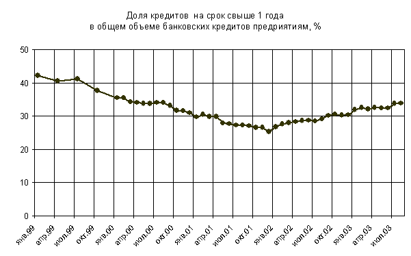 Сегодня российская экономика испытывает острую потребность в долгосрочных финансовых ресурсах для модернизации основных средств. Однако финансовая система предоставляет в основном краткосрочные ресурсы (см. график 4).