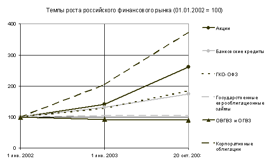 Инструменты финансового рынка | На 1 января 2002 г. | На 1 января 2003 г. | На 20 октября 2003 г. (оценка) |