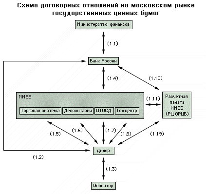 Функционирование рынка государственных ценных бумаг регламентируется нормативными актами Правительства РФ, Министерства финансов РФ, Банка России, а также договорами между инфраструктурными организациями Организованного рынка ценных бумаг и его участниками с вышеперечисленными