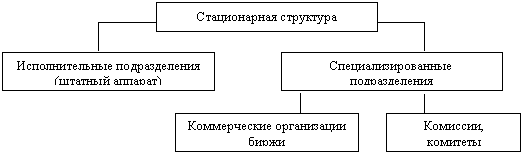 Стационарная структура биржи необходима для ведения хозяйственной биржевой деятельности. От того, как осуществляют свою работу подразделения, составляющие стационарную структуру, во многом зависит эффективность работы биржи.