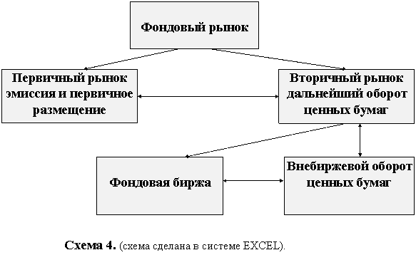 Как на первичном, так и на вторичном рынках имеется много путей продажи и покупки ценных бумаг. Главным из них является торговля ценными бумагами на фондовой бирже (схема 4).
