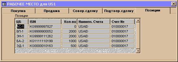 Данная форма позволяет просмотреть информацию по текущим позициям брокера. Данная форма чисто информационная, помогает брокеру ориентироваться в позициях по ЦБ перед вводом приказов.