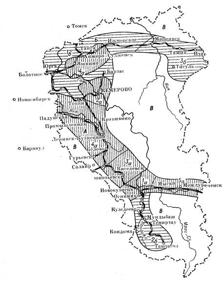 Анализ позволил выделить на территории области три района (А. Б, В) и восемь подрайонов — 1а — 5а, lб — 3б (рис. 4).
