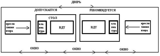 Рабочие места с ВДТ и ПЭВМ по отношению к световым проектам должны располагаться так, чтобы естественный свет падал сбоку, преимущественно слева.