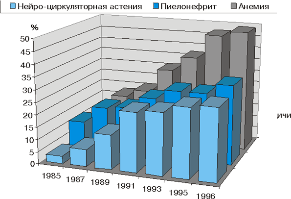 Таким образом, 11-летние наблюдения свидетельствуют о значительных отклонениях в течение процесса беременности, родов, состоянии плода и новорожденного у женщин, постоянно проживающих на контролируемых территориях. Очевидна необходимость дальнейшего изучения особенностей влияния малых доз ионизирующего излучения на организм женщины репродуктивного возраста как вне, так и во время беременности. Свертывание научных программ этого направления недопустимо, т.к. упущенное сегодня может оказаться совершенно непоправимым завтра.