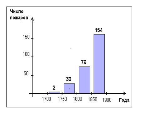 Число лесных пожаров в оном из районов Сибири за два столетия.