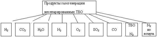 Вполне естественно из не сепарированных ТБО токсичных веществ не образуется, если не считать SO2, который может образоваться из ТБО (за счет термического разложения меркантанов). Из СОЖ продуктами газогенерации могут быть: