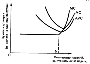 Робинсон исходит из того, что экономика не испытывает нехватки в естественных ресурсах. Численность рабочей силы и ее «качество», темпы роста рабочей силы, равно как и сведения о современной технологии (а также темпы технического прогресса),- все это Дж. Робинсон относит к числу заранее заданных условий. Предполагается также, что все предприятия образуют элементы полностью интегрированной структуры: они производят все, что необходимо для выпуска элементов конечного продукта. Трудовые издержки являются, следовательно, единственной статьей переменных издержек. Тогда поведение предельных издержек может быть охарактеризовано как бы «опрокинутой» L-образной кривой (см. рис. 1.1). Предельные издержки (МС) не обнаруживают изменений до тех пор, пока не достигнут объема производства, соответствующего нормальному уровню загрузки производственных мощностей (ON); затем эти издержки обнаруживают тенденцию к резкому увеличению. Средние переменные издержки (AVC) не меняются даже в ситуации, когда производственные мощности используются не полностью, что связано с наличием вспомогательного (overhead) персонала; оплата этих работников представляет собой «квазификсированные издержки, затраты, которые предприниматель должен будет осуществлять до тех пор, пока его предприятие находится в рабочем состоянии. Что же касается средних прямых издержек (average prime costs), то они снижаются по мере того, как производство приближается к уровню полной загрузки имеющихся мощностей».
