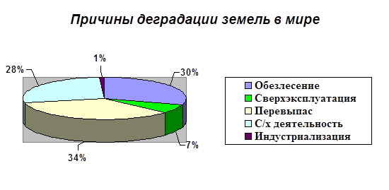 По оценкам экспертов ООН, современные потери продуктивных земель приведут к тому, что к концу столетия мир может лишиться почти 1/3 своих пахотных земель. Такая потеря в период беспрецедентного роста населения и увеличения потребности в продовольствии может стать поистине гибельной.