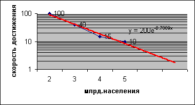 Термин "демографический взрыв", часто слышимый в последнее время, принципиально неверен. Не было никакого "взрыва": рост численности человеческой популяции все время был один и тот же. Чтобы достигнуть первого миллиарда, человечеству понадобилось более миллиона лет. Второй миллиард был достигнут за 100 лет, третий – за 40, четвертый – за 15, пятый – за 10. Смотрим графики в линейной и логарифмической шкалах и прогнозируем, за сколько времени будет достигнут 6, 7, 8 и прочие миллиарды .