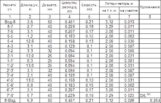 Расчёт ведётся в табличной форме по всему циркуляционному кольцу. Результаты вычислений представлены в таблице 2.2.