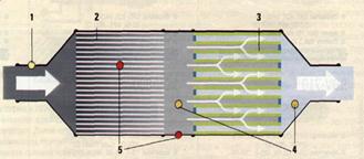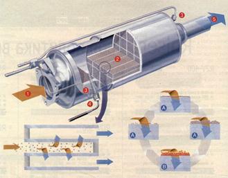 В фильтрах нового поколения общий принцип остался прежним: задержать и уничтожить. Но как добиться нужной для сгорания частиц сажи температуры? Во-первых, фильтр разместили сразу за выпускным коллектором. Во-вторых, через каждые 300-500 км пробега контроллер включает режим многофазного впрыска, увеличивая количество поступающего в цилиндр топлива. И, наконец, главное: поверхность фильтрующего элемента покрыта тонким слоем нового катализатора, который дополнительно повышает температуру выхлопных газов до необходимых 560-600°С. Отдаленно это напоминает работу каталитической бензиновой грелки для рыболовов.