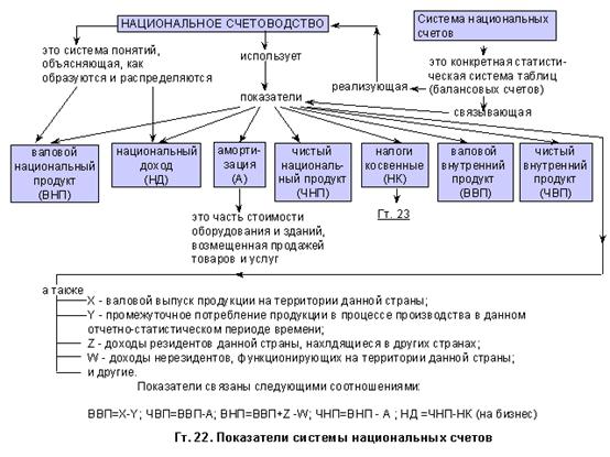 Помимо ВВП, в макроэкономическом анализе используется показатель валового национального продукта (ВНП), который показывает годовой объем конечных товаров и услуг, созданных гражданами страны, как в рамках национальной территории, так и за рубежом. Расчет ВНП основан на критерии принадлежности фатора производства резиденту или нерезиденту данной страны. Если к показателю ВВП добавлять разность между поступлениями от услуг факторов производства (факторными доходами) резидентов из-за границы и факторными доходами, полученными нерезидентами в данной стране, то получим показатель ВНП. Разность между показателями ВНП и ВВП для многих стран незначительна и колеблется в пределах +-1% от ВВП.