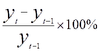 Также отметим, что индикатором фаз цикла выступает показатель темпа экономического роста, который выражается в процентах и рассчитывается по формуле: