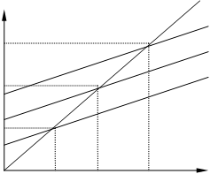 Отсюда легко объяснить, почему предельная склонность к потреблению в коротком периоде меньше, чем в длительном: при повышении дохода в текущем году на единицу потребление увеличится на Сyq единиц в текущем году и ещё на Сy(1 - q) единиц в следующем году.
