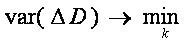 Попытаемся решить оптимизационную задачу, то есть найти такое k, при котором вариация изменения портфеля “D”, содержащего k длинных фьючерсных позиций и одну спотовую была бы минимальной: