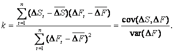 Из последней формулы следует, что мы предполагаем равное относительное изменение курсов, то есть, на сколько процентов изменился курс спот, на столько же изменится курс фьючерс.