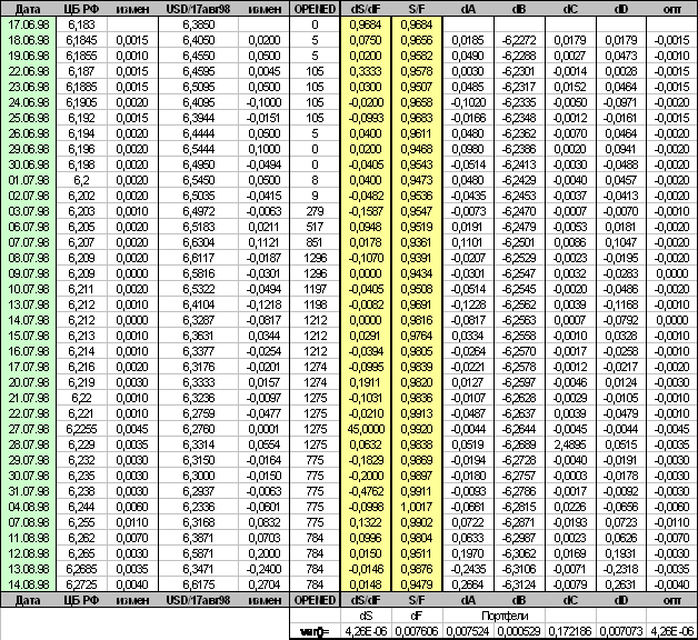 Были сделаны следующие выводы. Хеджирование валютным фьючерсом в данный момент не способно снизить валютный риск на сколько-нибудь существенную величину. Это происходит по двум причинам. Во-первых, как и прежде, на данном рынке присутствует слишком мало хеджеров и слишком много спекулянтов, которые получают доход от раскачивания фьючерсной цены доллара. Во-вторых, в рассматриваемый период происходит излишнее давление Центробанка на цену спот национальной валюты, которое превратилось из средства достижения экономической стабильности в самоцель. Вследствие чего, первое, нивелируются естественные колебания курса, что делает вариацию изменения курса спот на несколько порядков ниже того же показателя для фьючерса. Второе, периодически происходит значительное отставание динамики валютного курса от темпов роста внутренних цен, что заканчивается валютными кризисами. Поэтому, несмотря на внешне стабильный в отдельные периоды валютный курс, хеджировать риск его изменения все равно надо.
