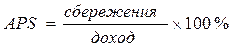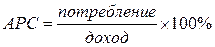Под средней склонностью к потреблению (АРС) понимается «психологический фактор», отражающий желание людей покупать потребительские товары. АРС рассчитывается как доля данного общего дохода в процентах, которая идет на потребление. Та доля общего дохода, которая идет на сбережения, называется средней склонностью к сбережению (АРS). То есть:
