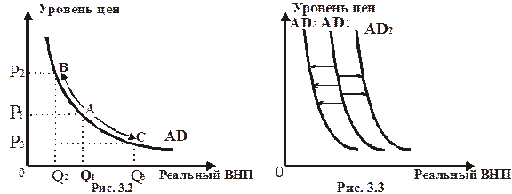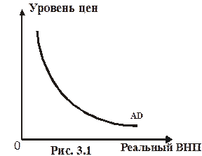 Совокупный спрос (aggregate demand) – это реальный объем национального производства (ВНП), который готовы приобрести внутренние и внешние потребители, фирмы и государство при любом возможном уровне цен в стране. Совокупный спрос графически можно изобразить в виде кривой (рис.3.1).
