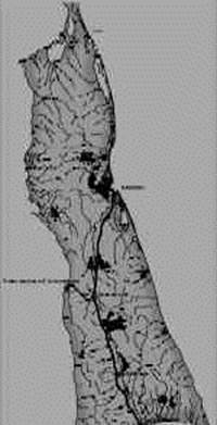 Рис.6. Размещение основных лесных пожаров на Сахалине в 1998 году. (Гари на нелесных и нелесопокрытых землях не отмечены) Пожарная обстановка в сезоне 1998 года в лесах Сахалина начала обостряться уже в мае - после прекращения дождей и установления жаркой, сухой погоды на большей части Центрального и Северного Сахалина. Первое крупное возгорание было зафиксировано в районе реки Чамгу, на участках недавних сплошных рубок. Этот пожар был одним из самых значительных по площади и с разной степенью активности действовал на протяжении всего лета и осени, вплоть до ноября. Выгорел практически весь бассейн реки Чамгу; по малым притокам в верховьях реки огонь вышел в высокогорье Набильского хребта. В результате пострадали также значительные площади горных лесов из кедрового стланика и растительных сообществ выше верхней границы леса. По свидетельствам очевидцев, некогда одна из самых красивейших и богатых лососем рек - Чамгу - в результате огненного бедствия 1998г. стала мертвой рекой в мертвых берегах. С середины-конца мая лесные пожары все интенсивнее развивались на Центральном и Северном Сахалине. Аномальное отсутствие дождя в этих районах с течением летних месяцев усиливало пожарную опасность и способствовало развитию возгораний, расширению охваченных огнем участков. В июне наиболее напряженная ситуация складывалась в Ногликском и Смирныховском районах, в других отдельные очаги удавалось подавить. Однако работники лесной охраны прекрасно понимали, что там, где пока еще не горит, только сильный дождь может снять угрозу. И если настоящего дождя не будет - распространение огня на все "сухие" районы неизбежно. В течение июня Чамгинский пожар начал распространяться на прилегающие территории, в бассейны соседних рек. Благодаря усилиям лесной охраны, это движение в южном направлении было остановлено, однако на севере огонь вышел из-под контроля и продолжал занимать все новые участки лесов в Ногликском районе, которые в подавляющем большинстве были в недалеком прошлом пройдены рубками главного пользования. Это значительно облегчало и ускоряло движение огня и развитие пожаров. В середине июля Управление лесами начало предпринимать меры, выходящие за рамки обычных - из Иркутска был срочно вызван специальный самолет-амфибия БЕ-12П. Однако его применение было крайне неэффективным - во многом, из-за несогласованности действий различных ведомств и неготовности экипажа к специфическим сахалинским условиям. В это же время пожары начинают возникать и в других районах - сначала в Углегорском, затем в Поронайском и Тымовском. К началу августа к ним прибавились Охинский и Александровск-Сахалинский районы. Во многих местах тушение не велось по причине сильно пересеченного рельефа - техника не может работать на крутых склонах, во многих местах у лесной охраны уже просто не хватало сил и средств реагировать на сигналы тревоги, часто такие сигналы поступали с большим опозданием. Во многих местах ситуация резко ухудшается из-за сильных порывистых ветров. В августе кое-где прошедшие небольшие дожди уже не смогли изменить обстановку. По утверждению ответственных лиц Сахалинского управления лесами, на 5 августа реальная ситуация в лесах северной части острова превысила пятый, наивысший класс пожарной опасности. Руководство лесного хозяйства ос