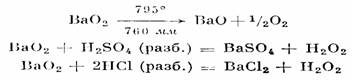 Ba02 представляет собой белый парамагнитный порошок с плотностью 4,96 г1см3 и т. пл. 450°. Он разлагается до Ba0 (600°) или до кислорода (795°), устойчив при обычной температуре (может храниться годами), плохо растворяется в воде, спирте и эфире, растворяется в разбавленных кислотах: