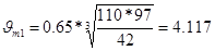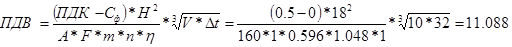 V — объем газовоздушной смеси, V1=110 м3/с, V2=10 м3/с.