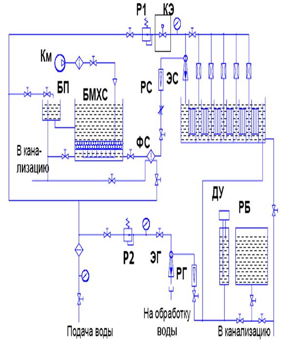 Далее приведена технологическая схема комплекса по электрохимическому производству гипохлорита натрия производительностью по активному хлору от 10 до 1080 кг/сут ((рис.2.3??)):