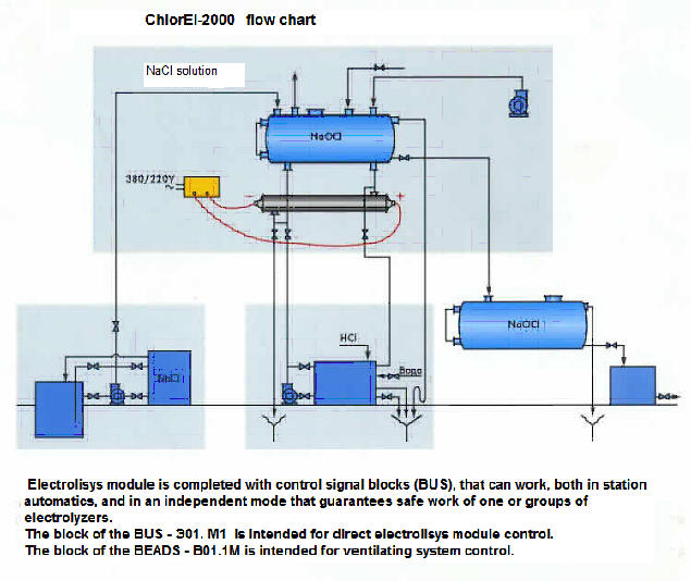 ХлорЭл-2000 - установка для обеззараживания питьевой воды на станциях водоподготовки и обеззараживания сточных и оборотных вод. Производительность до 100 кг. активного хлора в сутки до70 тыс. кубометров воды в сутки.