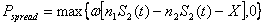 Выплаты по спрэдовым опционам основаны на разнице между фактическим спрэдом цен (доходностей) двух активов и вмененным (заложенным в опцион в качестве страйковой цены). Выплаты по опциону можно рассчитать как: