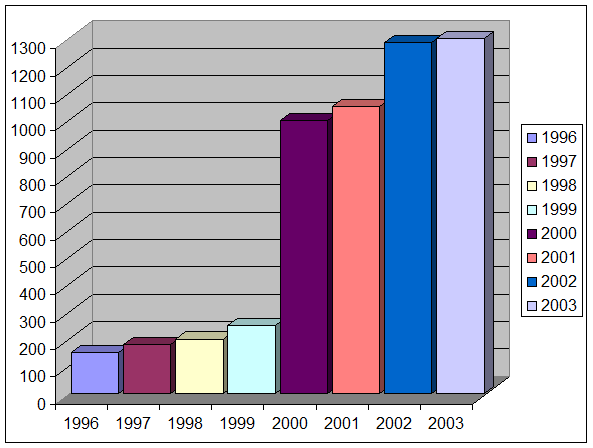 За период 1996 – 2003 год трудоустроено около 3500 человек (в том числе трудоустроенных повторно):