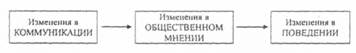 В чем же причина такого пристального внимания PR к коммуникативным потокам? Дело в том, что PR видит свои цели в следующей последовательности воздействия: внесение изменений в коммуникативный поток, от которого возникают изменения в общественном мнении, которые могут привести к изменению в поведении. Все это схематически предстает в следующем виде (рис. 1):