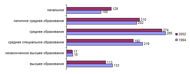 Несмотря на ряд сложностей, связанных с уменьшением объема государственного финансирования образования, перестройки его хозяйственного механизма, количество некоторых образовательных заведений увеличилось (в основном за счет негосударственных). Все это отразилось на положительной динамике таких важных социально-экономических показателей, как уровень образования (рис. 1) и грамотность населения (табл. 2).