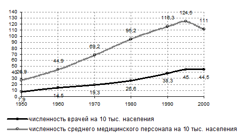 Рис. 2. Обеспеченность населения медицинскими кадрами в России[4]