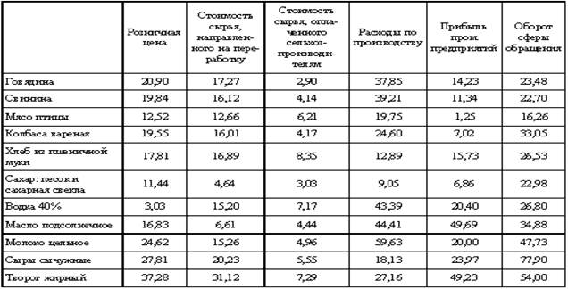 В рассматриваемом периоде увеличение цен на разные товары и услуги происходило неодинаковыми темпами, что позволило устранить имевшие место в дореформенный период диспропорции в системе цен, обусловленные дотациями из бюджета, с помощью которых покрывались затраты предприятий по производству и реализации продуктов питания.