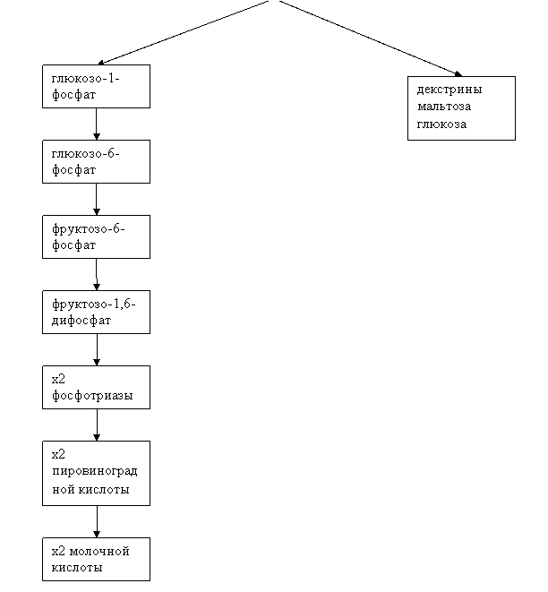 Гликоген – после убоя его синтез невозможен, начинается анаэробный полиферментативный распад, путем фосфоролиза с образованием молочной кислоты и амилолиза с образованием редуцирующих углеводов.