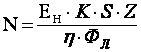 где ЕН - нормируемое (требуемое) освещение, лк;