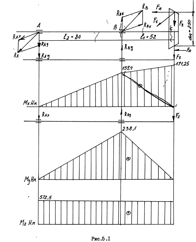 MYB = Ft * l1 = 4580 * 52 = 238160 Нмм,