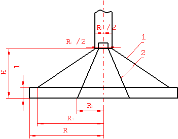 R1 = 0.8×R = 0.8×0.414 = 0.3312 м,