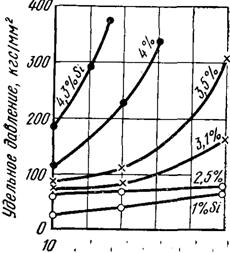 Удельное давление, кгс/мм2, при содержании Si, % | |||||