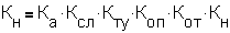 где Ка - комплексный показатель изделия-аналога; Ксл - коэффициент сложности (технического совершенства) нового изделия по сравнению с аналогом; Кту - коэффициент, учитывающий изменения технического уровня основного производства завода-изготовителя нового изделия по отношению к заводу-изготовителю изделия аналогам; Коп и Кот - коэффициенты, учитывающие изменения уровня организации производства и труда завода-изготовителя нового изделия по отношению к заводу-изготовителю изделия-аналога; Кп - коэффициент, учитывающий изменения типа производства (отношение коэффициента серийности нового изделия по отношению к изделию-аналогу).