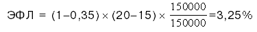 где ЭФЛ — эффект финансового левериджа, заключающийся в приросте коэффициента рентабельности собственного капитала, %;