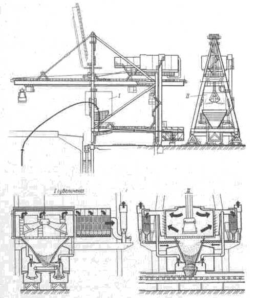 Рис.8. Грейферно-бункерный перегружатель с пылеулавливающей шлюзовой камерой.