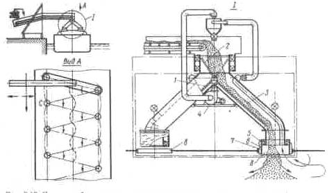 При больших грузопотоках используют машины непрерывного действия, перемещающие пылевидный груз в закрытых кожухах винтовых или цепных транспортеров.